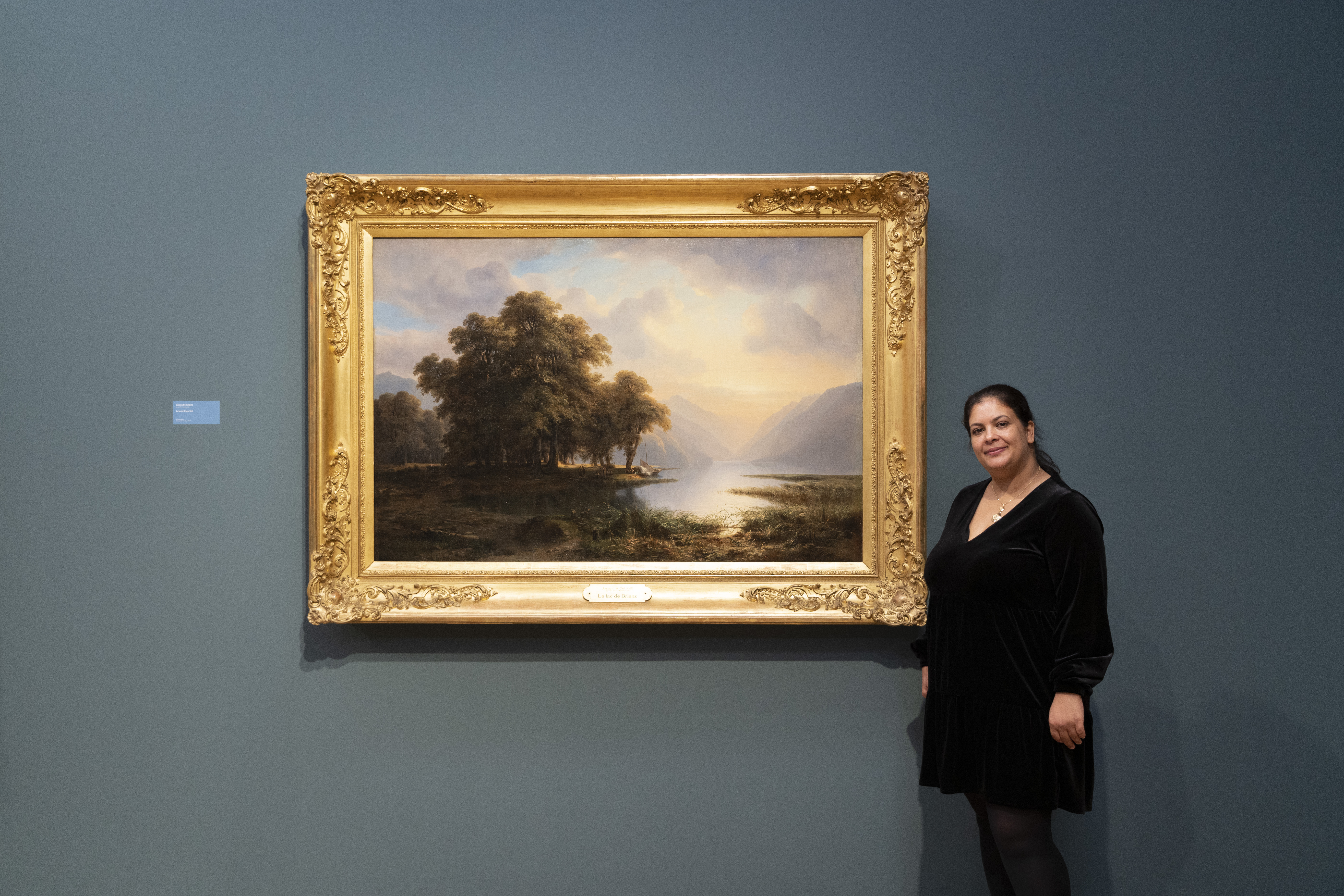 Rafika commente en arabe « Le lac de Brienz » d’Alexandre Calame (1843). Ce paysage évoque pour elle la valeur de la vie, la lumière qui s’offre à nous chaque jour. La nature est pour elle le remède de chacune et chacun. Elle appelle à un émerveillement conscient envers la nature, la lumière, la nuit et soleil.