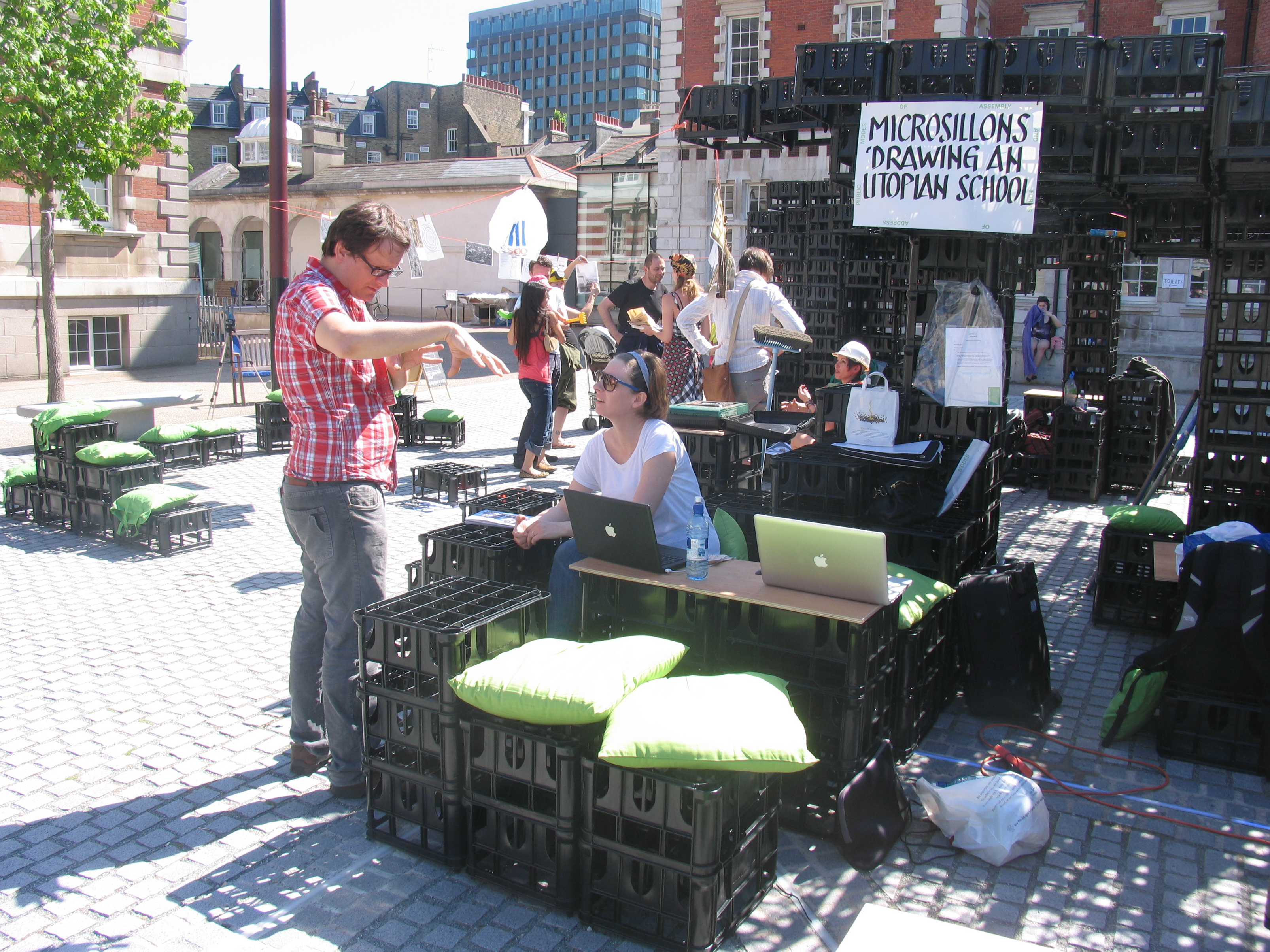 Dans le cadre du Market of Ideas (pendant la Parade), microsillons a invité les participants à apporter des éléments pour la création d'une école utopique.