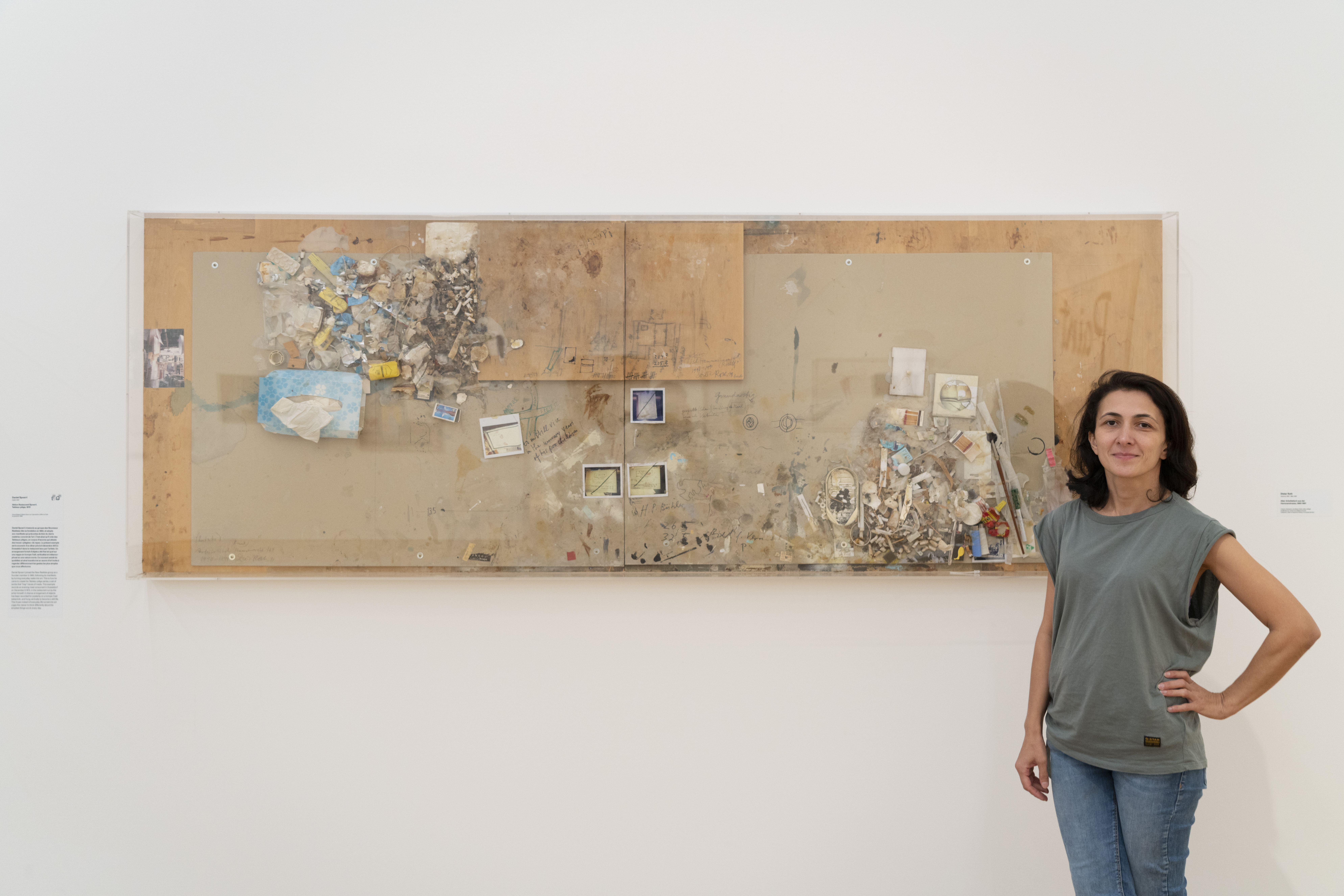 Nino commente en géorgien « Alter Arbeitstisch aus der Hammerstrasse » de Dieter Roth (1990-1991). Elle s’est intéressée à cette œuvre car elle a provoqué en elle une réflexion sur les différentes postures possibles envers la vie et l’environnement. Elle voit dans ce tableau un message de protestation contre la négligence individuelle envers l’environnement proche de toustes et, plus globalement, envers la planète.