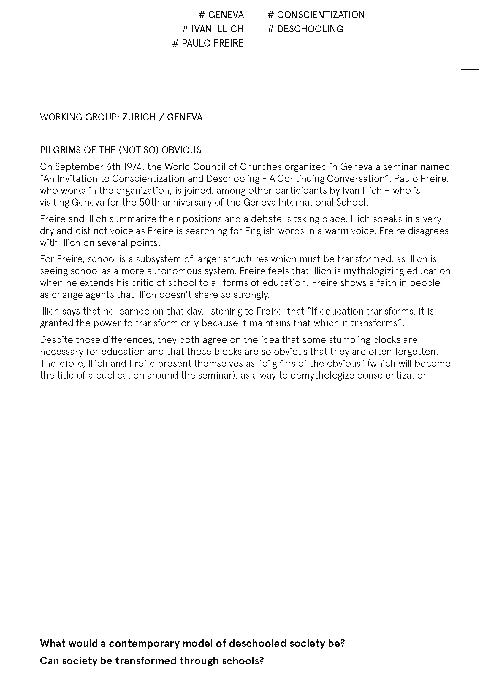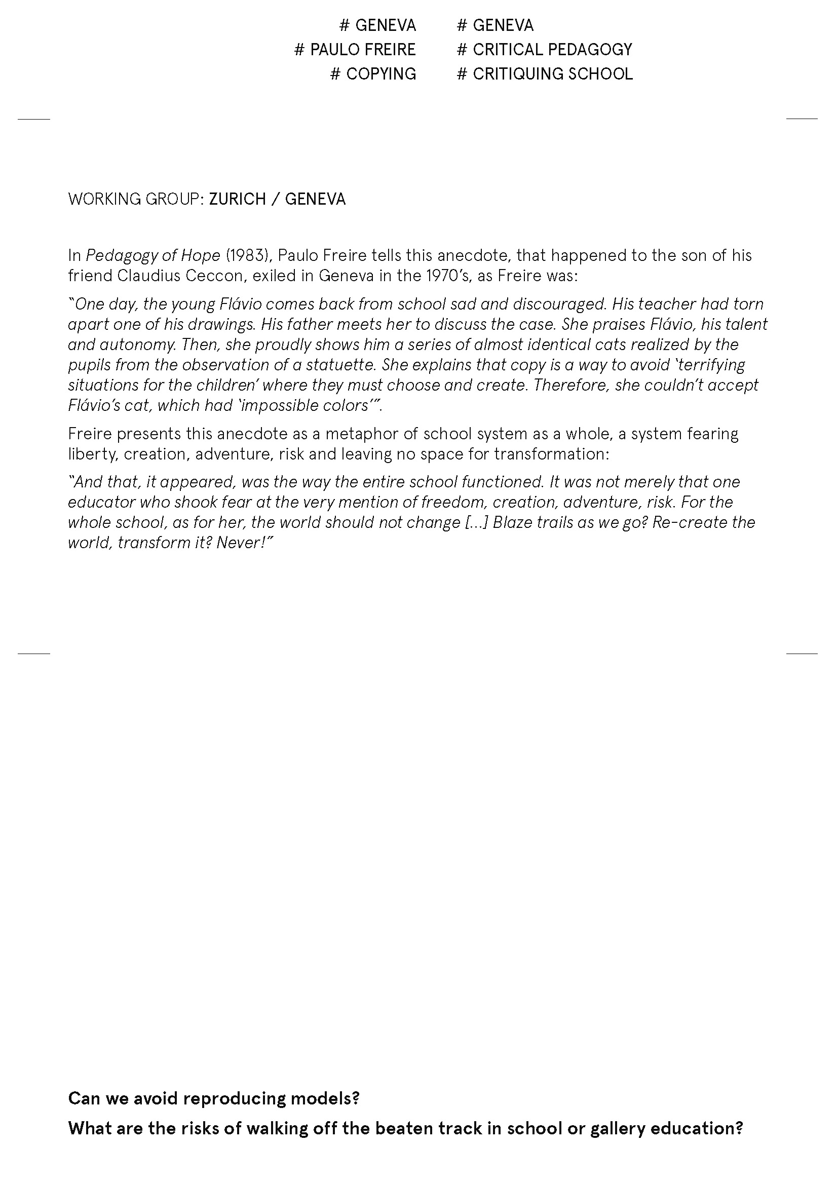 The Un/Chrono/Logical Timeline is an educational tool developed by intertwining hi/stories to engage with arts education histories and their global connections. The timeline includes a set of un-foldable cards and an instruction of use. When activated, it encourages participants to look for new ways of representing history of arts education taking into account a range of geopolitical viewpoints. Instead of organizing history in a customary chronological order, the timeline attempts to create connections between often seemingly remote (both in terms of time and geographical location) events, figures, publications, artefacts, etc. It invites to learn, construct, deconstruct, criticize and question history in a participatory way. (source : https://www.another-roadmap.net/clusters/intertwining-histories/tools-for-education-intertwining-histories/un-chrono-logical-timeline-en-es-fr-2/)